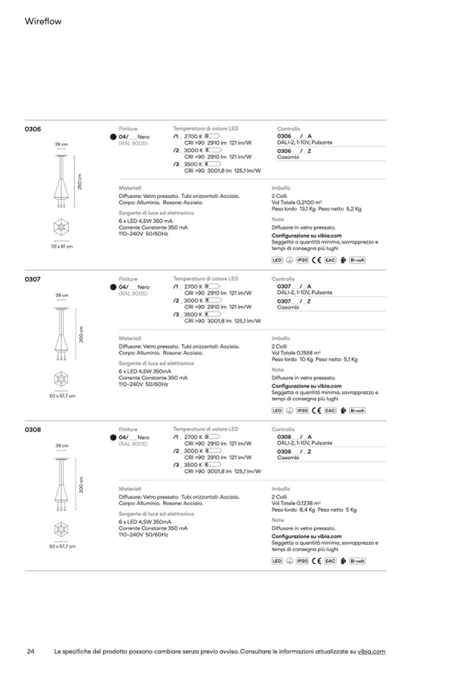 Le specifiche del prodotto possono cambiare senza previo avviso. Consultare le informazioni attualizzate su vibia.com