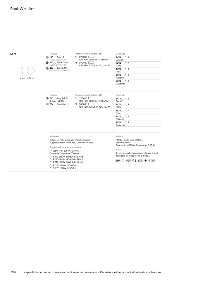 Le specifiche del prodotto possono cambiare senza previo avviso. Consultare le informazioni attualizzate su vibia.com