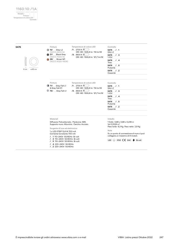È imprescindibile inviare gli ordini attraverso www.vibia.com o e-mail