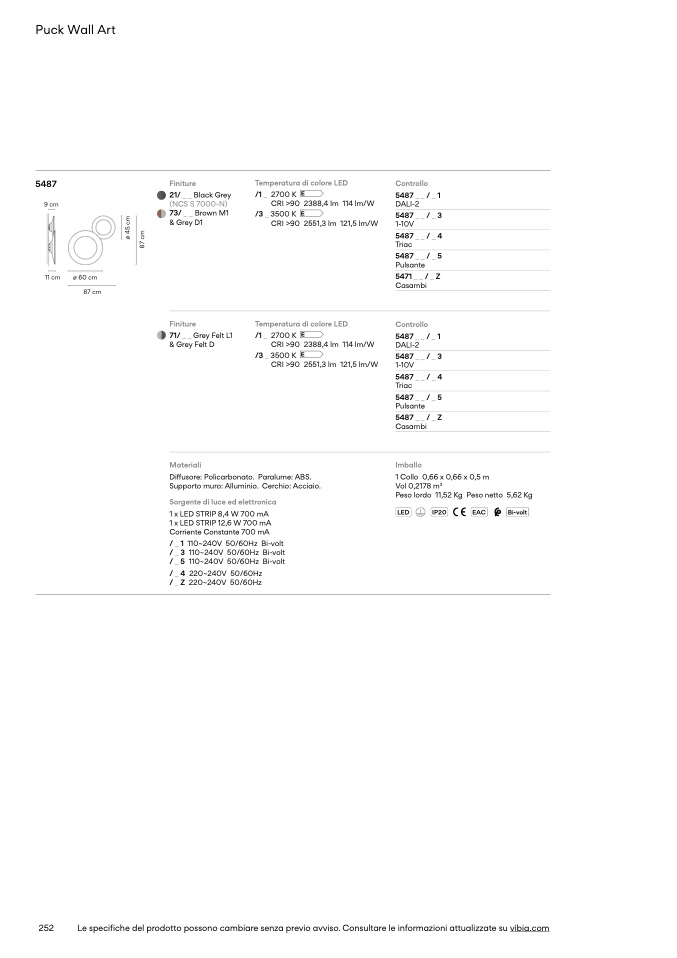 Le specifiche del prodotto possono cambiare senza previo avviso. Consultare le informazioni attualizzate su vibia.com
