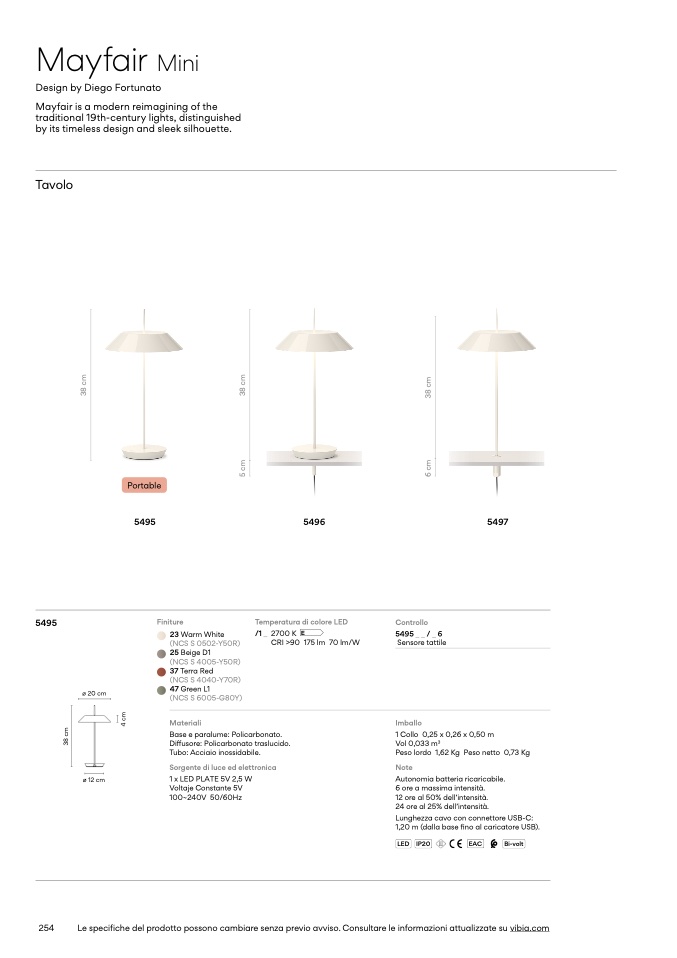 Le specifiche del prodotto possono cambiare senza previo avviso. Consultare le informazioni attualizzate su vibia.com