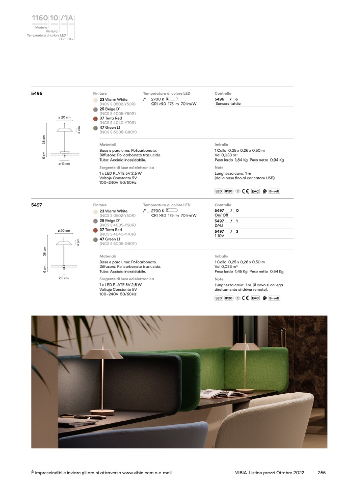 È imprescindibile inviare gli ordini attraverso www.vibia.com o e-mail