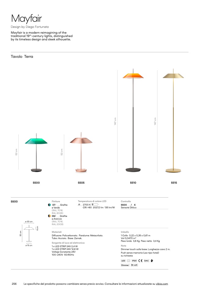 Le specifiche del prodotto possono cambiare senza previo avviso. Consultare le informazioni attualizzate su vibia.com