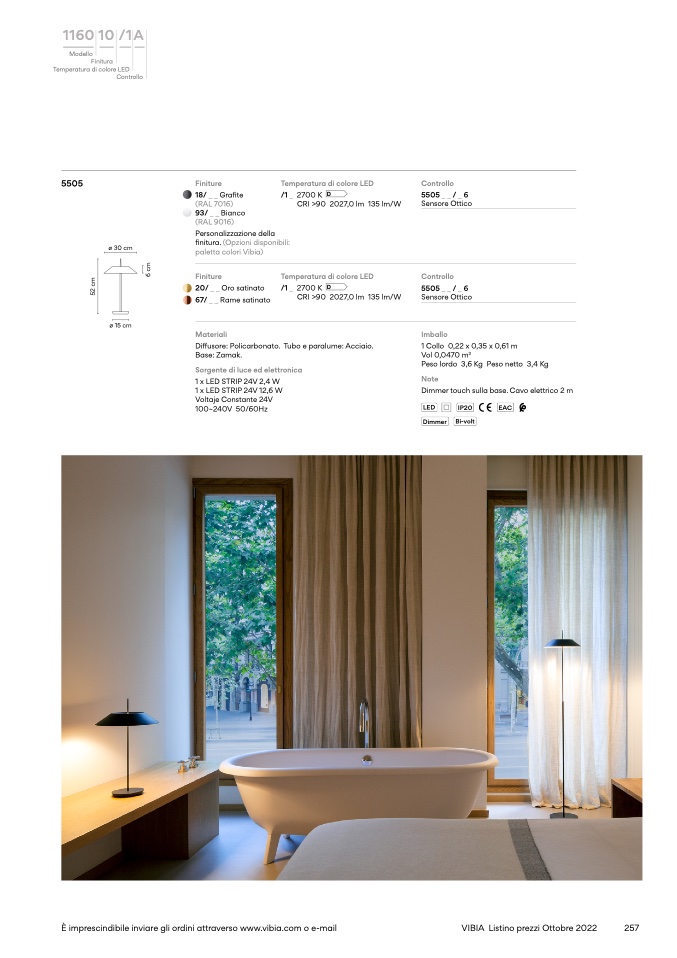 È imprescindibile inviare gli ordini attraverso www.vibia.com o e-mail