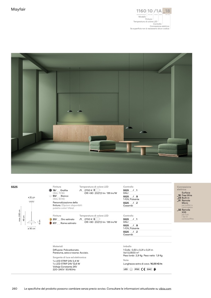Le specifiche del prodotto possono cambiare senza previo avviso. Consultare le informazioni attualizzate su vibia.com