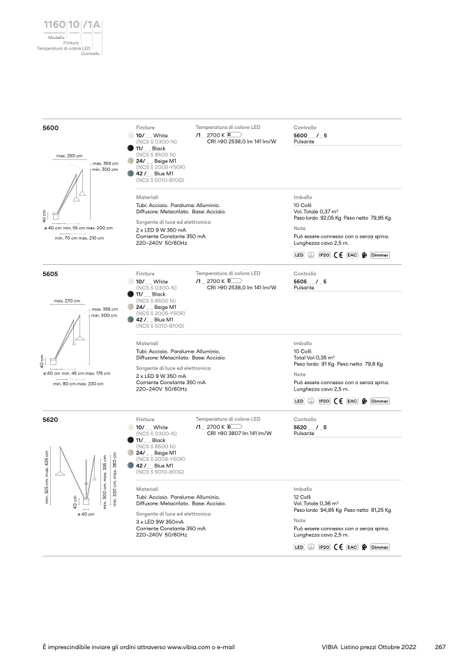 È imprescindibile inviare gli ordini attraverso www.vibia.com o e-mail