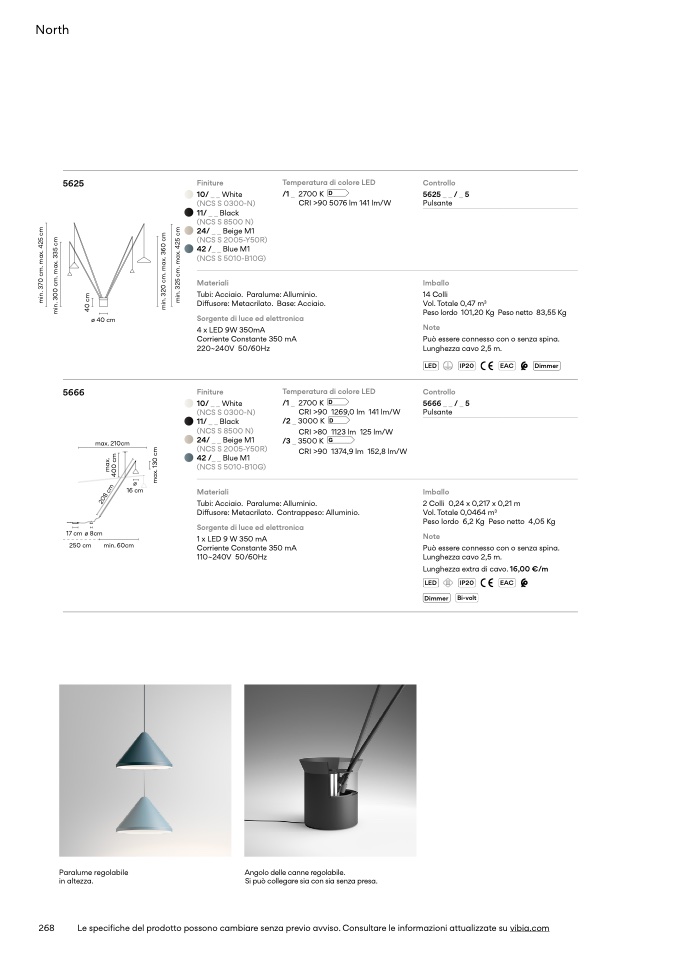 Le specifiche del prodotto possono cambiare senza previo avviso. Consultare le informazioni attualizzate su vibia.com
