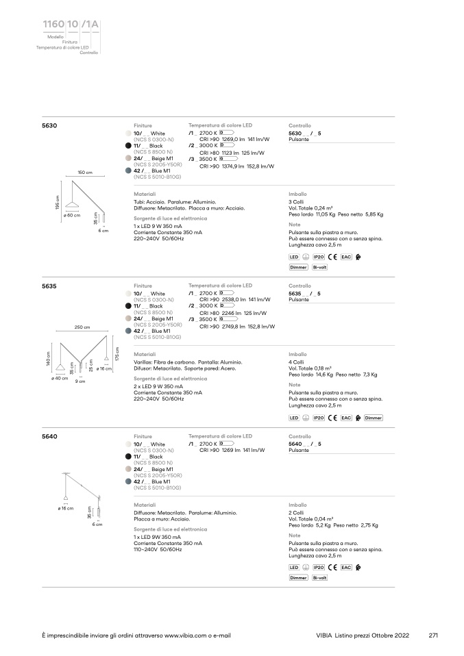 È imprescindibile inviare gli ordini attraverso www.vibia.com o e-mail