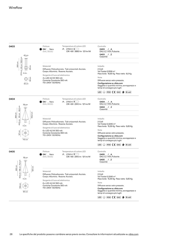 Le specifiche del prodotto possono cambiare senza previo avviso. Consultare le informazioni attualizzate su vibia.com