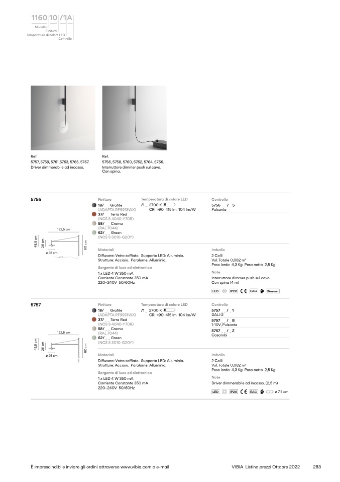 È imprescindibile inviare gli ordini attraverso www.vibia.com o e-mail