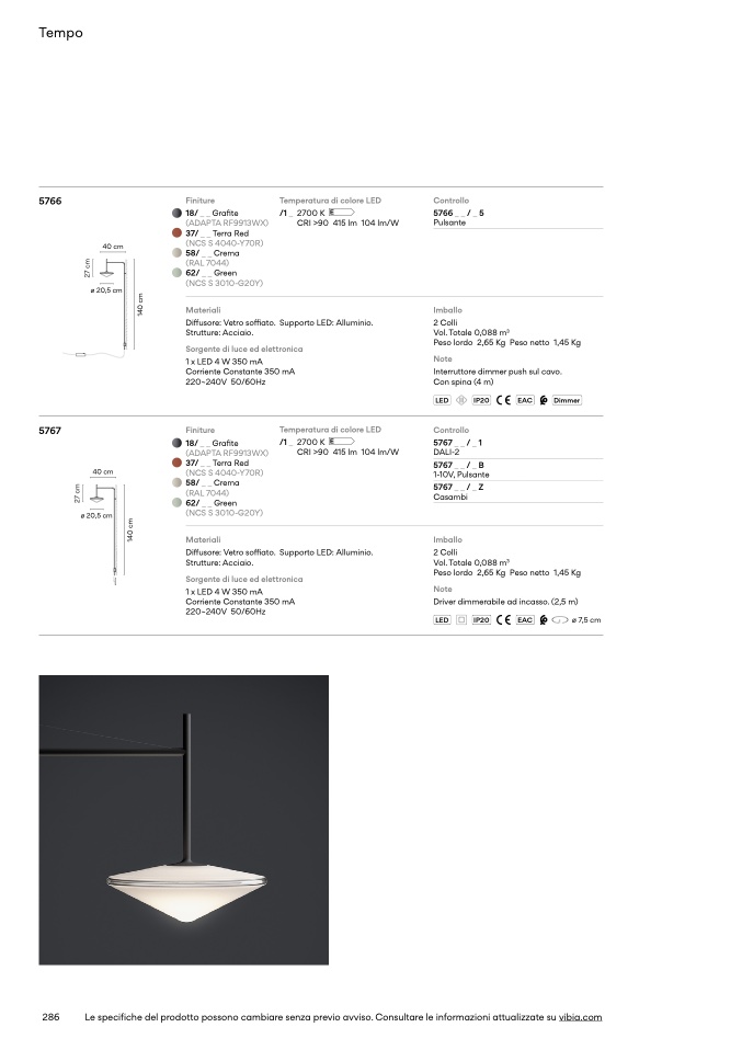 Le specifiche del prodotto possono cambiare senza previo avviso. Consultare le informazioni attualizzate su vibia.com