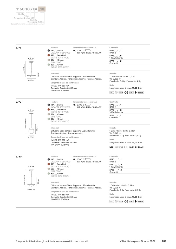 È imprescindibile inviare gli ordini attraverso www.vibia.com o e-mail