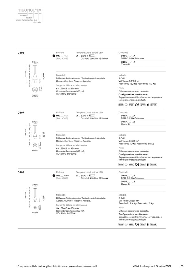 È imprescindibile inviare gli ordini attraverso www.vibia.com o e-mail