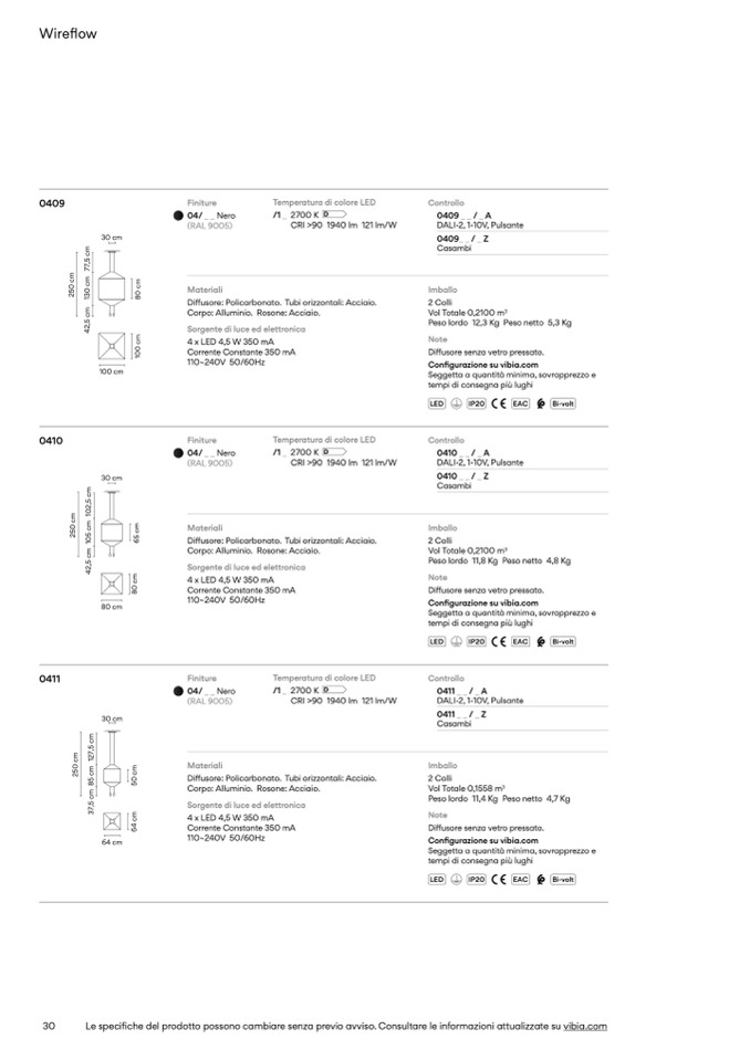 Le specifiche del prodotto possono cambiare senza previo avviso. Consultare le informazioni attualizzate su vibia.com