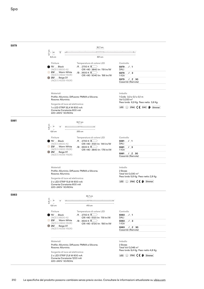 Le specifiche del prodotto possono cambiare senza previo avviso. Consultare le informazioni attualizzate su vibia.com