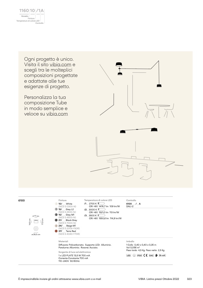 È imprescindibile inviare gli ordini attraverso www.vibia.com o e-mail