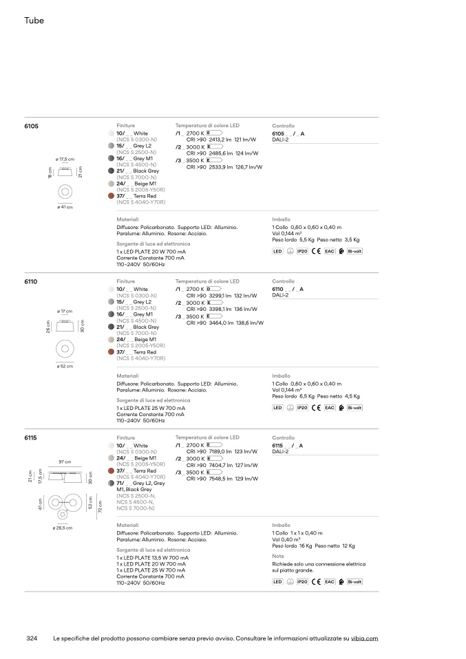 Le specifiche del prodotto possono cambiare senza previo avviso. Consultare le informazioni attualizzate su vibia.com
