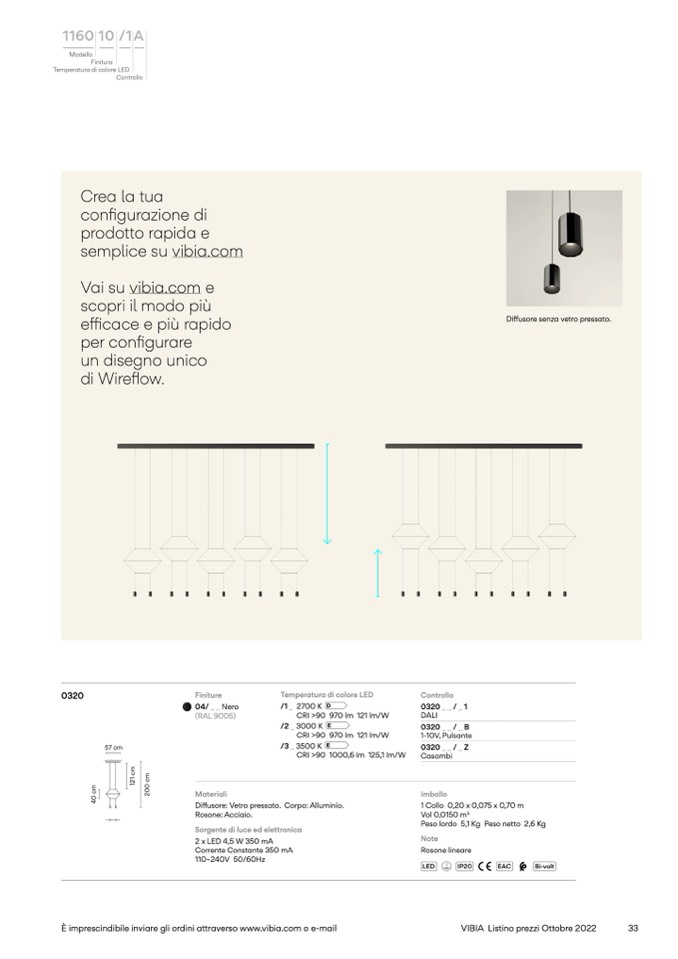 È imprescindibile inviare gli ordini attraverso www.vibia.com o e-mail
