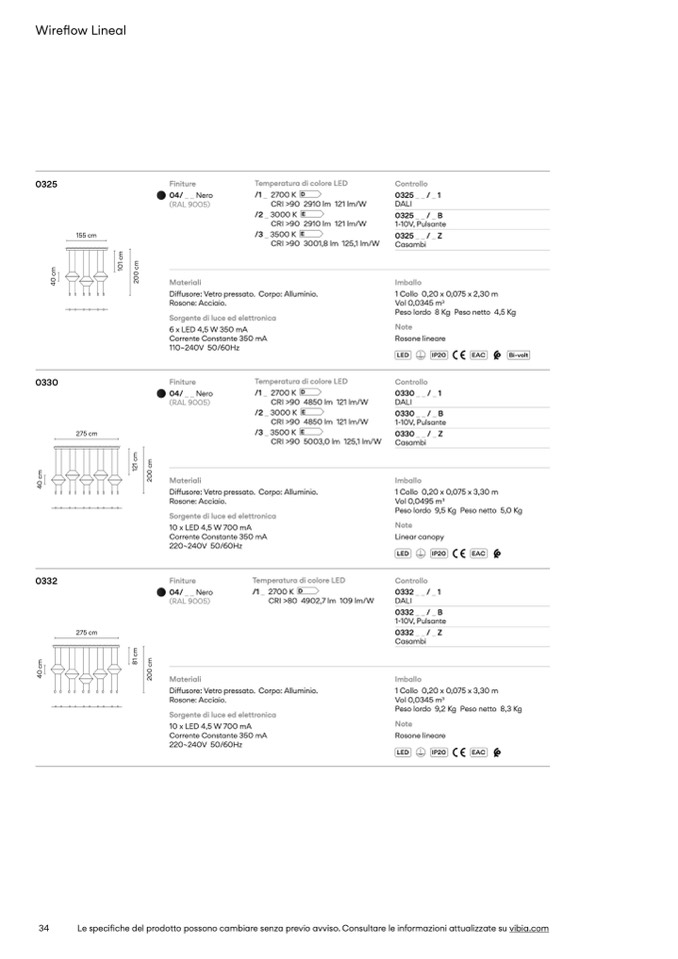 Le specifiche del prodotto possono cambiare senza previo avviso. Consultare le informazioni attualizzate su vibia.com
