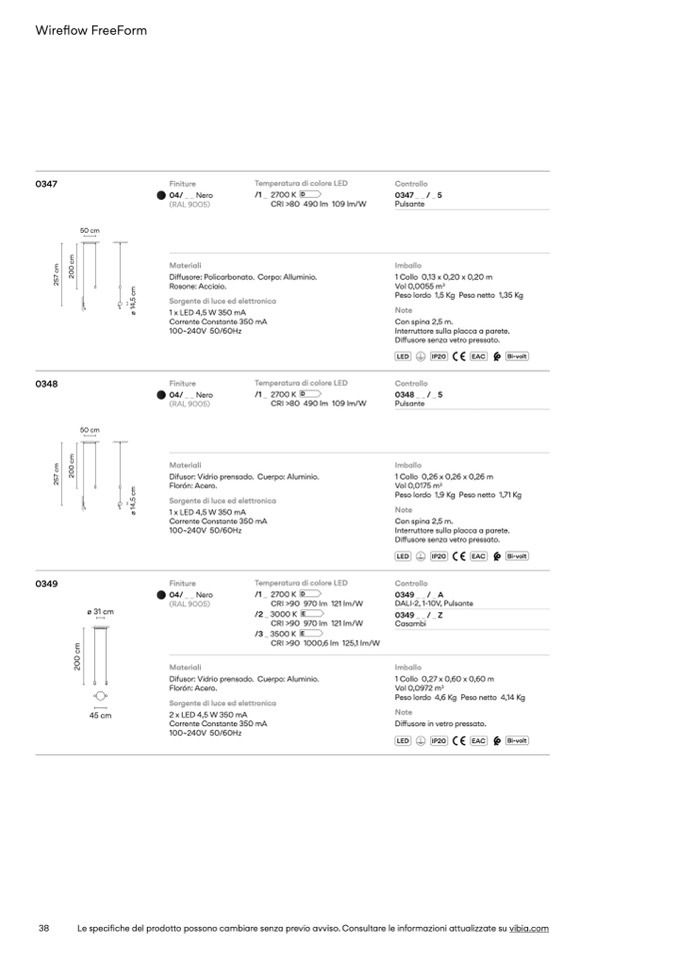 Le specifiche del prodotto possono cambiare senza previo avviso. Consultare le informazioni attualizzate su vibia.com
