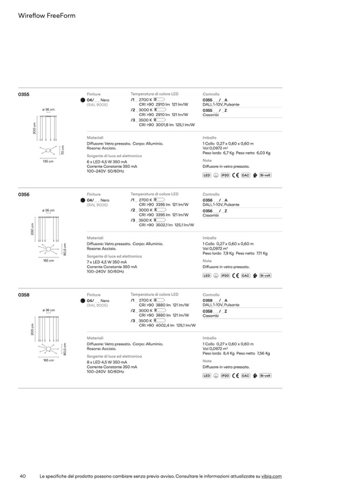 Le specifiche del prodotto possono cambiare senza previo avviso. Consultare le informazioni attualizzate su vibia.com