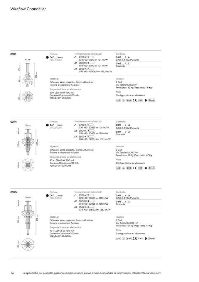 Le specifiche del prodotto possono cambiare senza previo avviso. Consultare le informazioni attualizzate su vibia.com