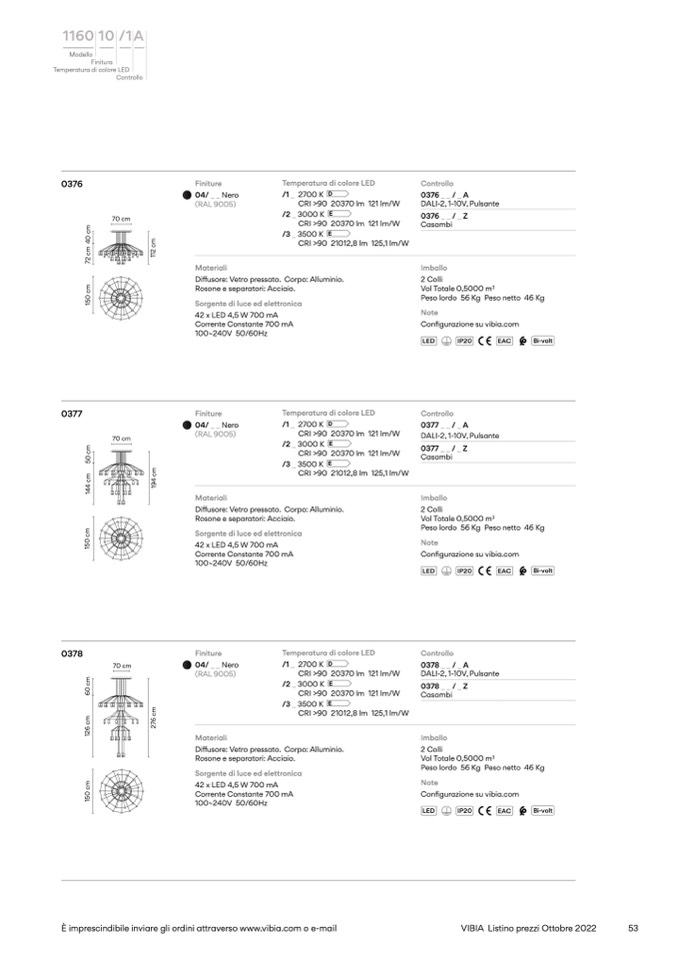 È imprescindibile inviare gli ordini attraverso www.vibia.com o e-mail