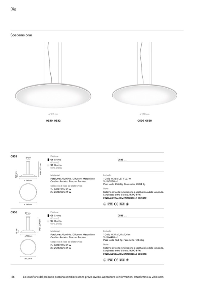 Le specifiche del prodotto possono cambiare senza previo avviso. Consultare le informazioni attualizzate su vibia.com