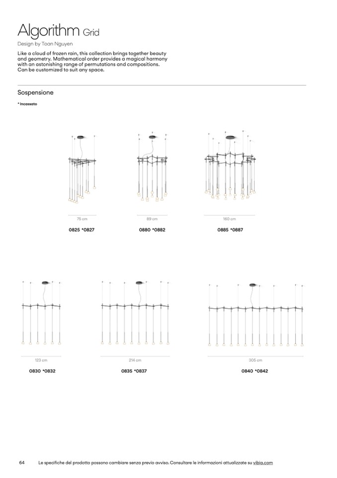 Le specifiche del prodotto possono cambiare senza previo avviso. Consultare le informazioni attualizzate su vibia.com