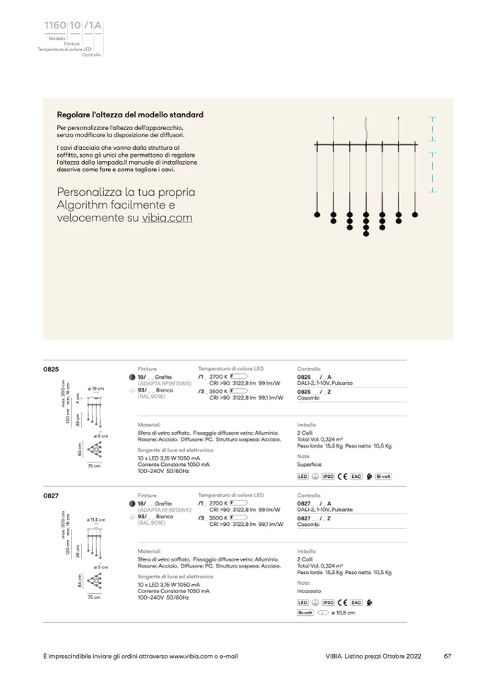 È imprescindibile inviare gli ordini attraverso www.vibia.com o e-mail