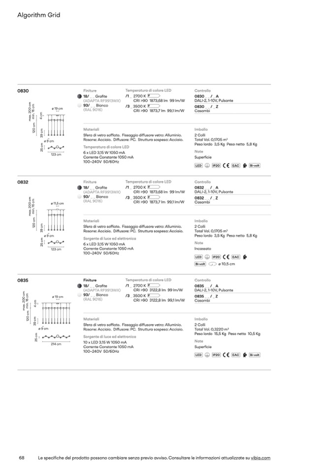 Le specifiche del prodotto possono cambiare senza previo avviso. Consultare le informazioni attualizzate su vibia.com