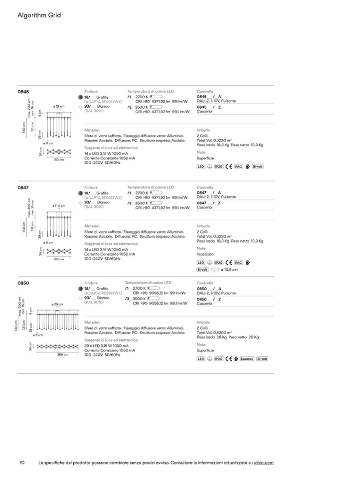 Le specifiche del prodotto possono cambiare senza previo avviso. Consultare le informazioni attualizzate su vibia.com