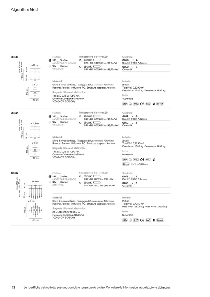 Le specifiche del prodotto possono cambiare senza previo avviso. Consultare le informazioni attualizzate su vibia.com