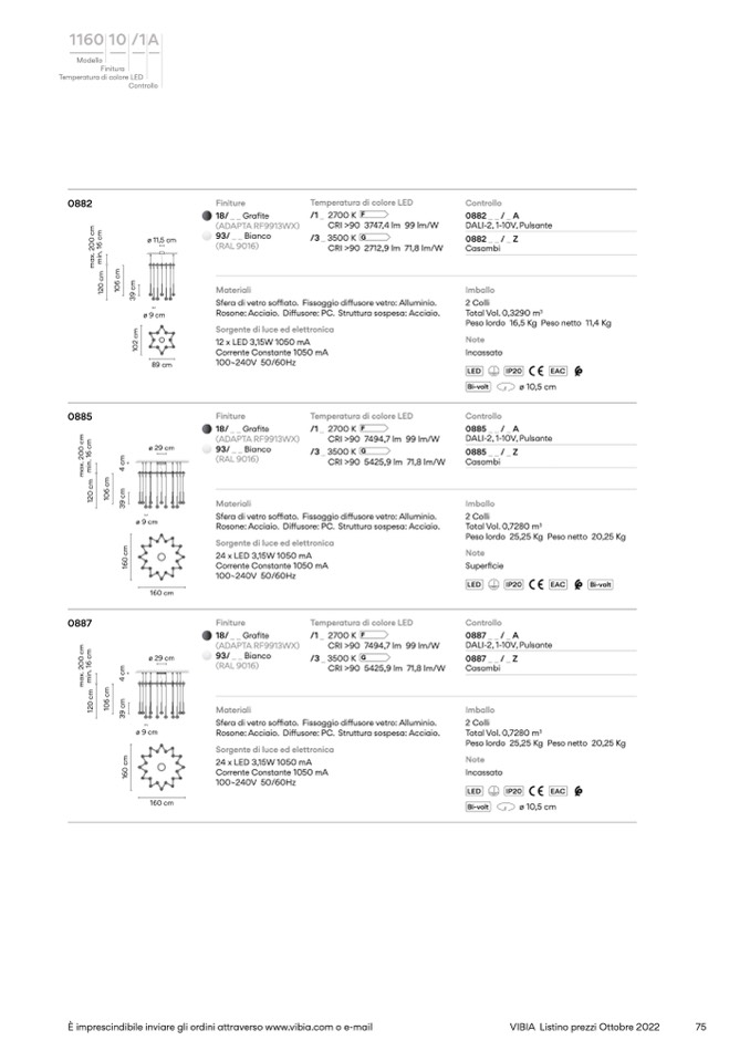È imprescindibile inviare gli ordini attraverso www.vibia.com o e-mail
