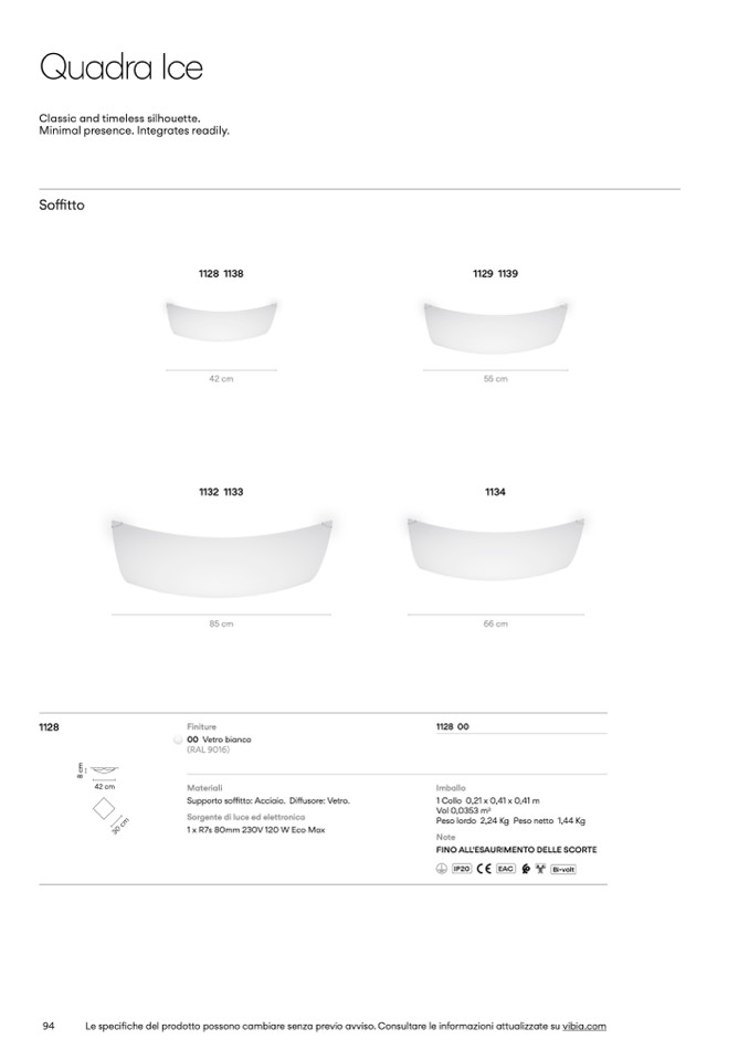 Le specifiche del prodotto possono cambiare senza previo avviso. Consultare le informazioni attualizzate su vibia.com