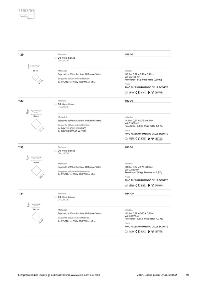 È imprescindibile inviare gli ordini attraverso www.vibia.com o e-mail
