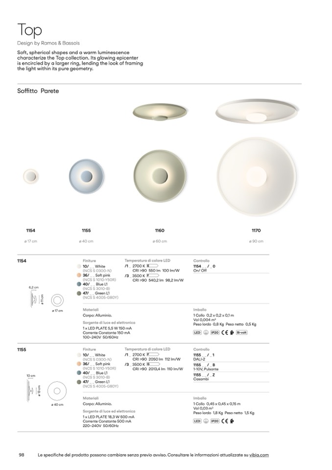 Le specifiche del prodotto possono cambiare senza previo avviso. Consultare le informazioni attualizzate su vibia.com