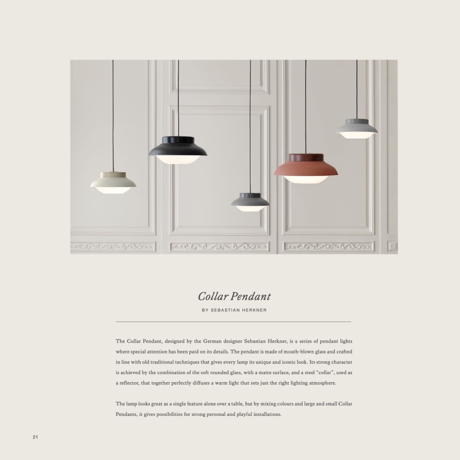 The Collar Pendant, designed by the German designer Sebastian Herkner, is a series of pendant lights