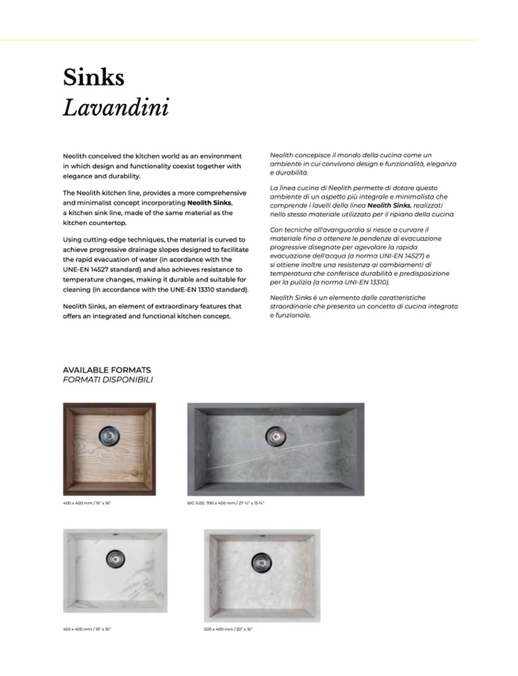 comprende i lavelli della linea Neolith Sinks, realizzati