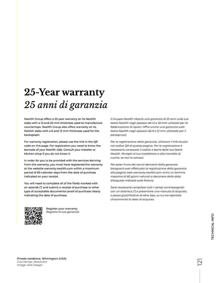Il Gruppo Neolith rilascia una garanzia di 25 anni sulle sue