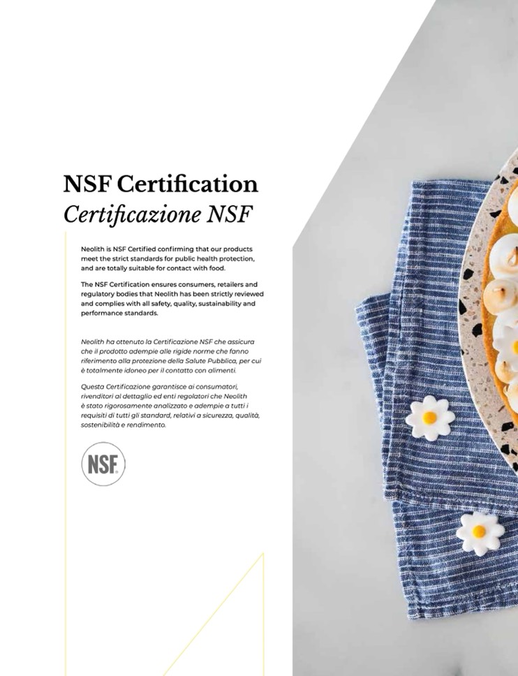 Neolith ha ottenuto la Certificazione NSF che assicura
