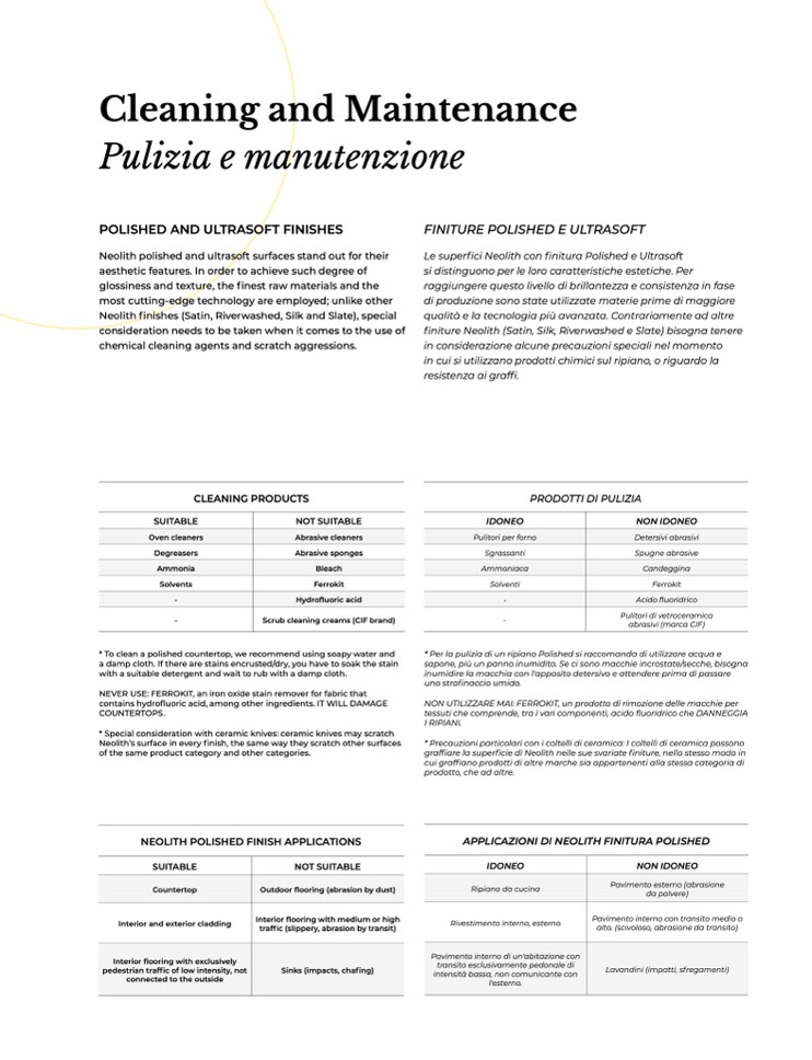 finiture Neolith (Satin, Silk, Riverwashed e Slate) bisogna tenere