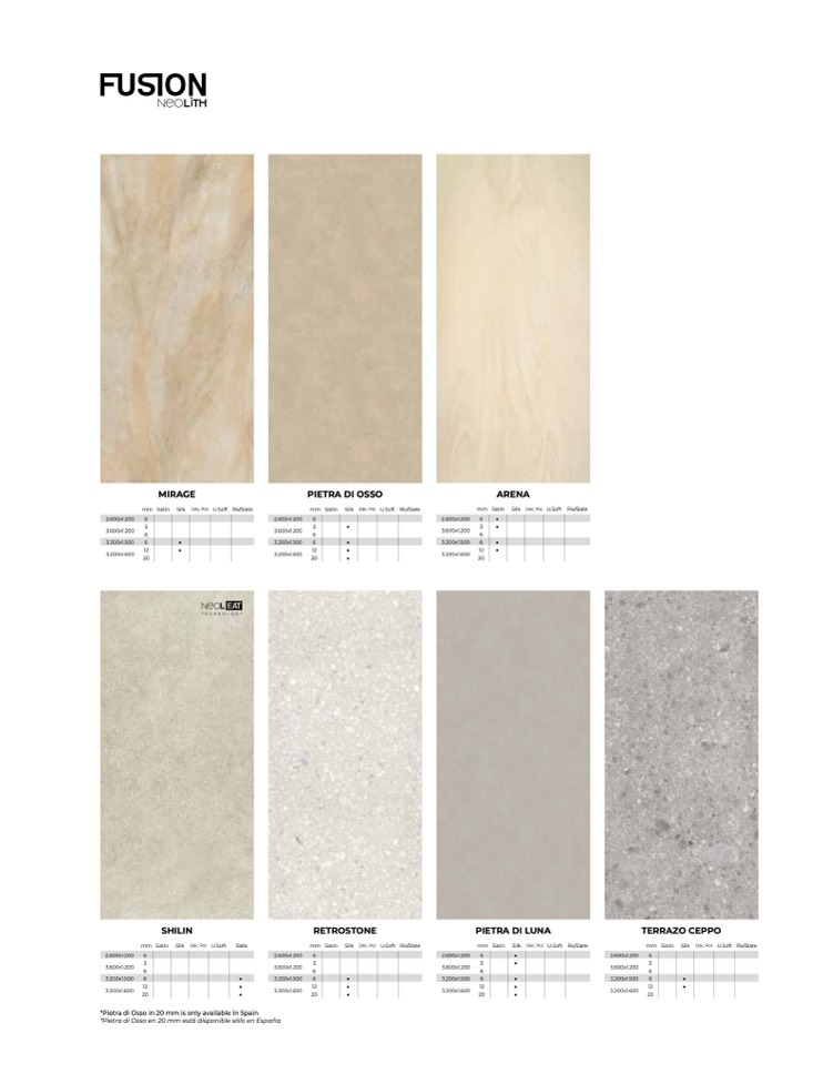 *Pietra di Osso in 20 mm is only available in Spain