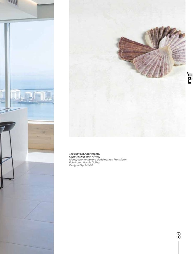 Island, countertop and cladding: Iron Frost Satin