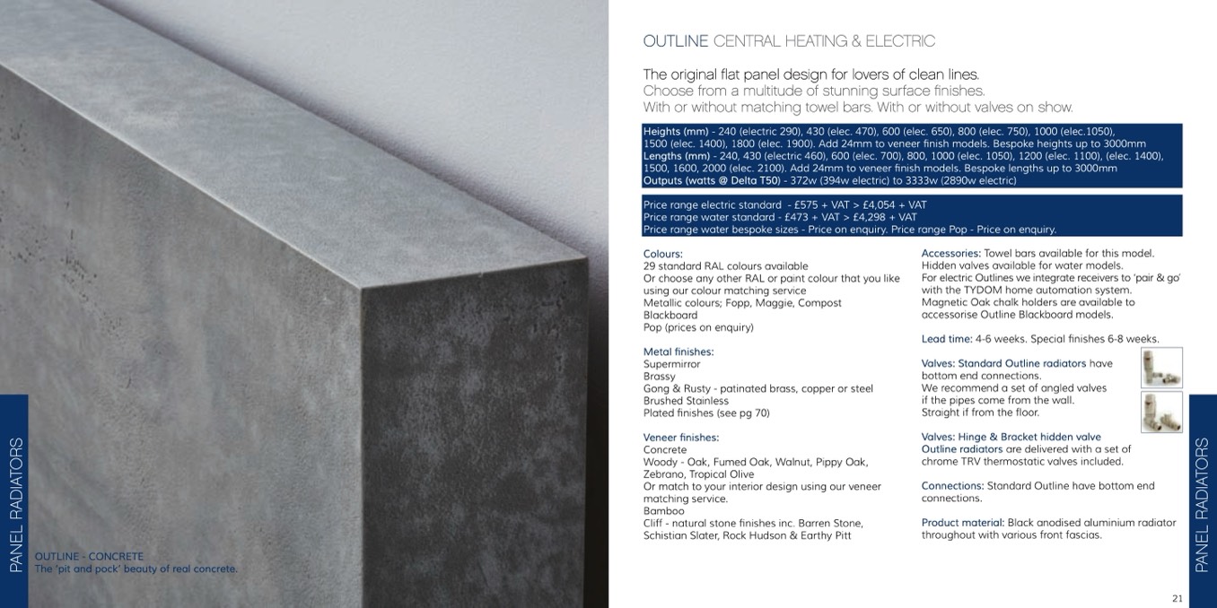 Outline radiators are delivered with a set of