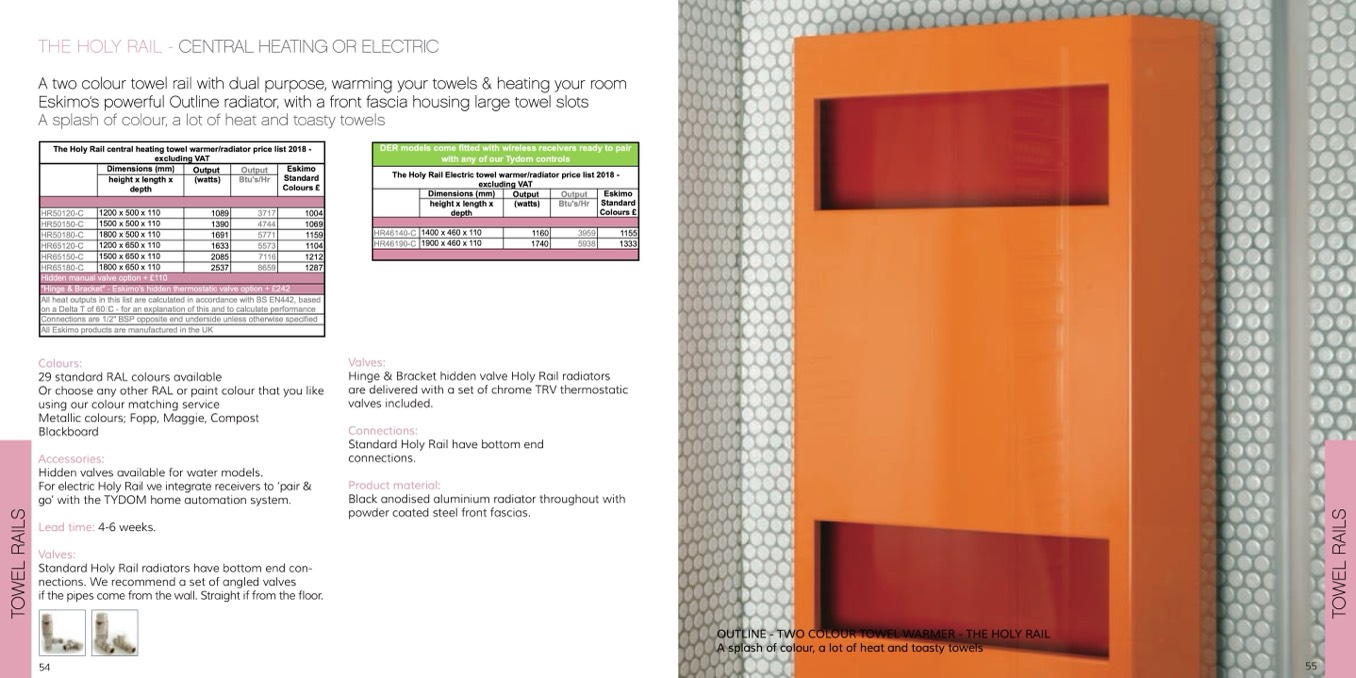 The Holy Rail central heating towel warmer/radiator price list 2018 -