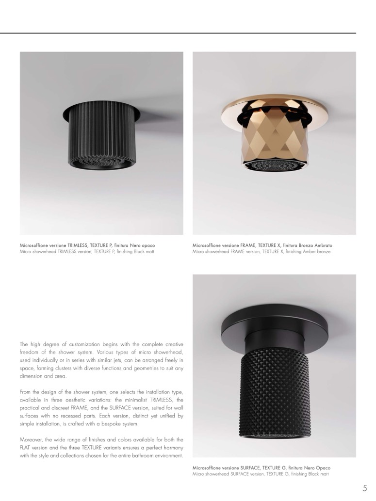 Micro showerhead FRAME version, TEXTURE X, finishing Amber bronze