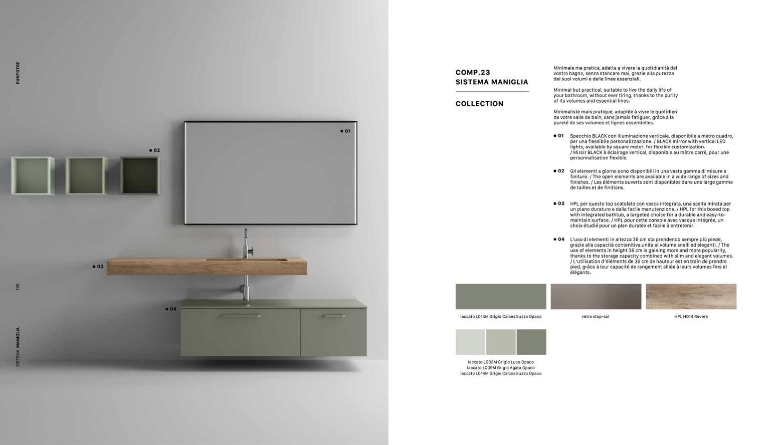 03 HPL per questo top scatolato con vasca integrata, una scelta mirata per