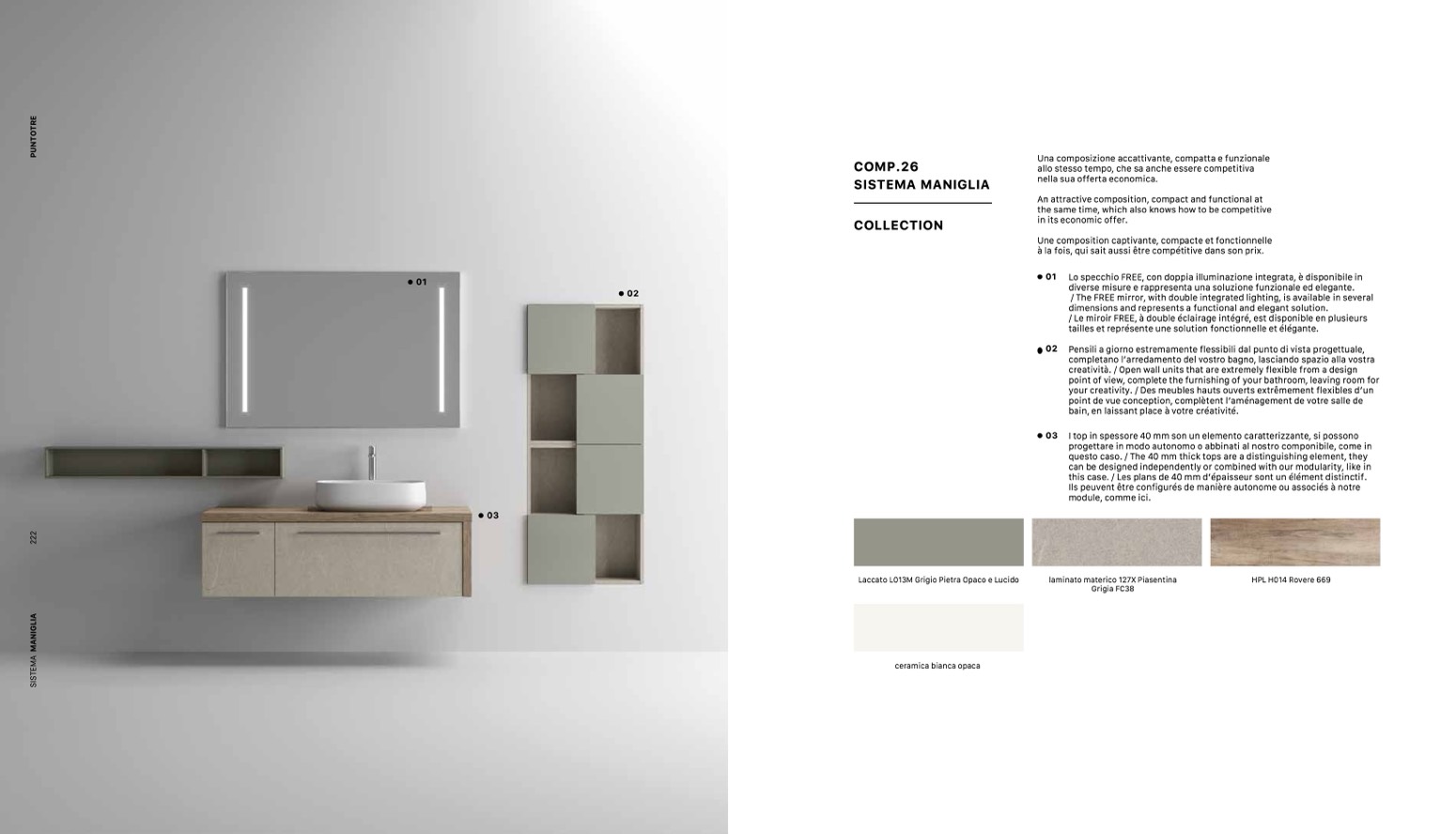 01 Lo specchio FREE, con doppia illuminazione integrata, è disponibile in