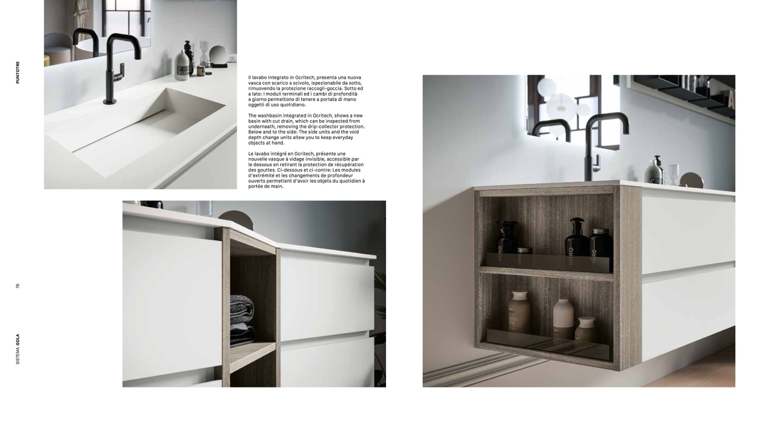 vasca con scarico a scivolo, ispezionabile da sotto,